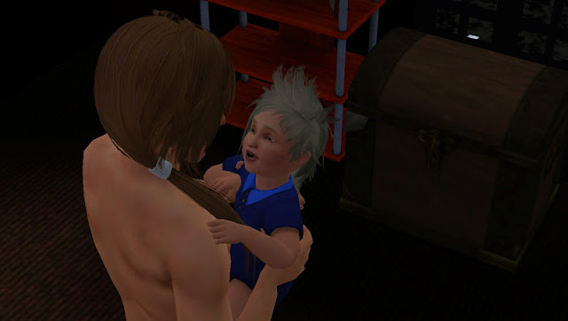 Severin, meanwhile, looks more and more like his father everyday. This makes the Sim Deity cackle with glee. He's every bit a stinker like he was as a toddler. Only now his body is more capable.
